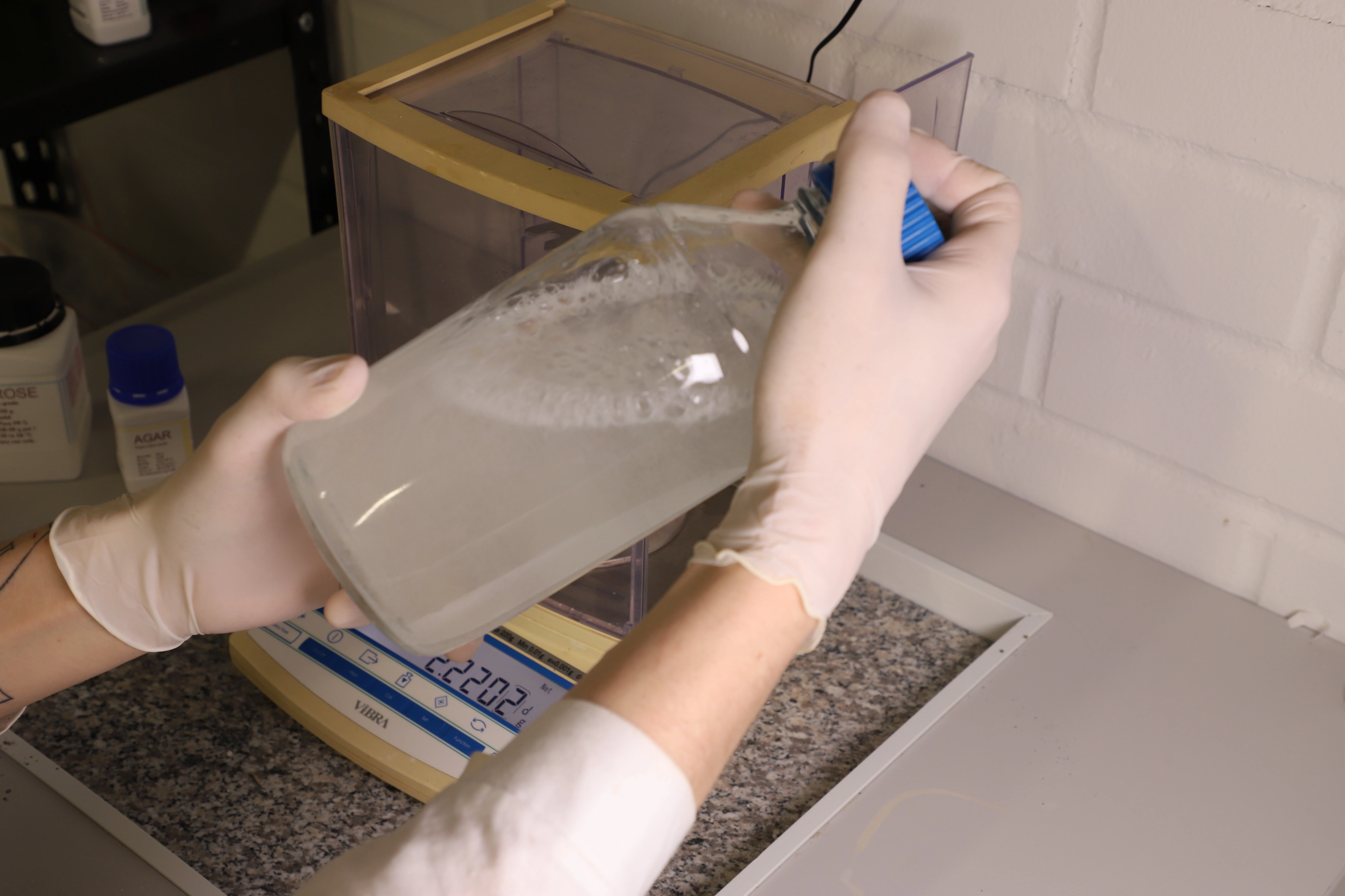 Option A — Heat first, then dispense, then autoclave (recommended when working in a flow box or without a true laminar cabinet)