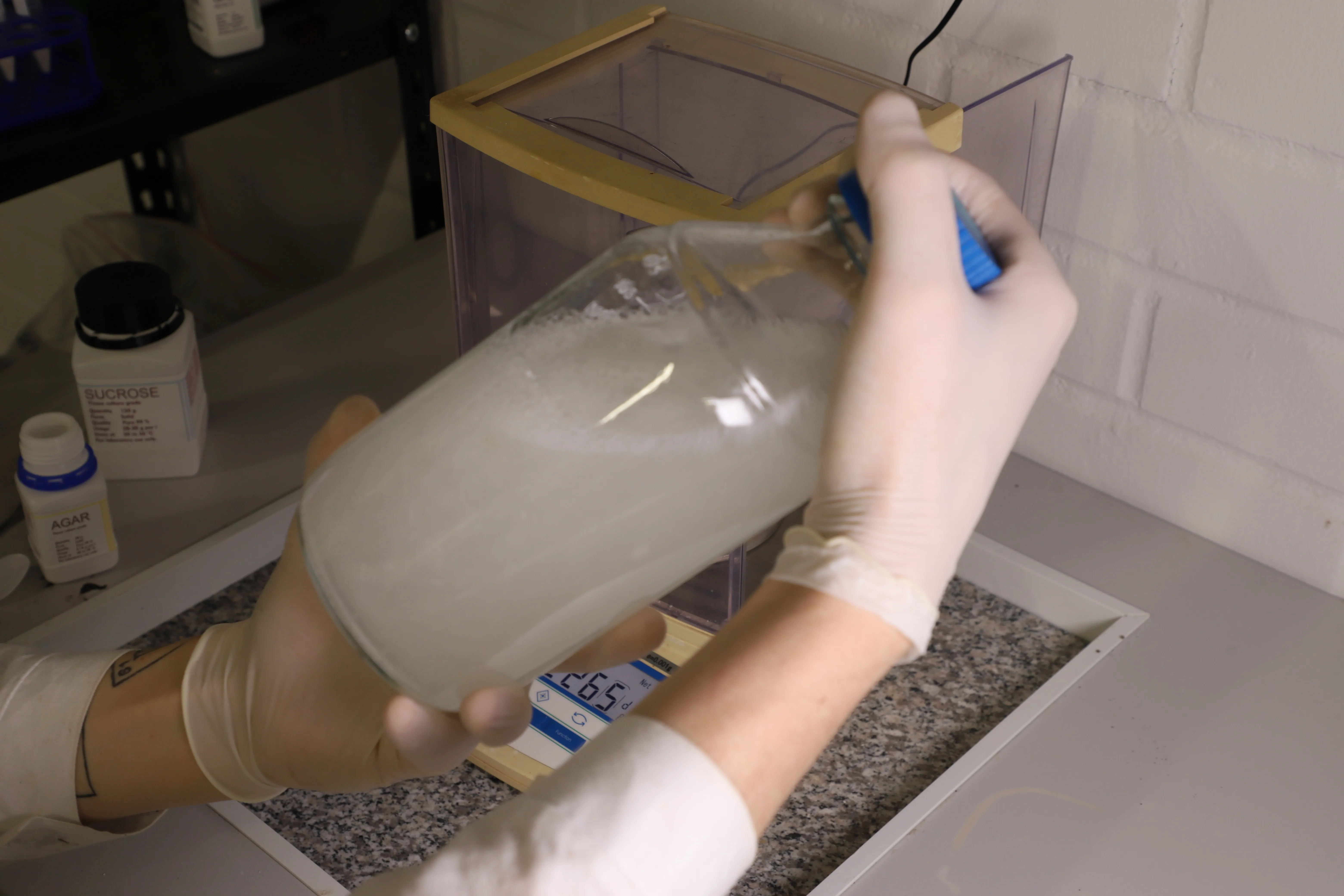 Autoclave the medium in a suitable autoclavable bottle or flask, allow it to cool to a safe handling temperature, then dispense it inside a laminar flow cabinet into pre-sterilized culture vessels. This option is suitable only when the laminar cabinet provides reliable air sterility. If you do not have a laminar cabinet and are working in a flow box, we recommend Option A, as it typically helps reduce contamination rates.